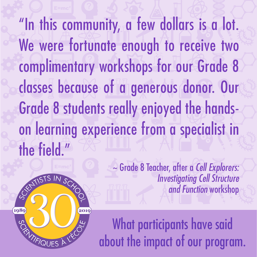 For more information on Adopt-a-School, contact Amy Schindler, Director of Fund Development and Communications, at 905-837-9626, ext. 237 or amy.schindler@scientistsinschool.ca